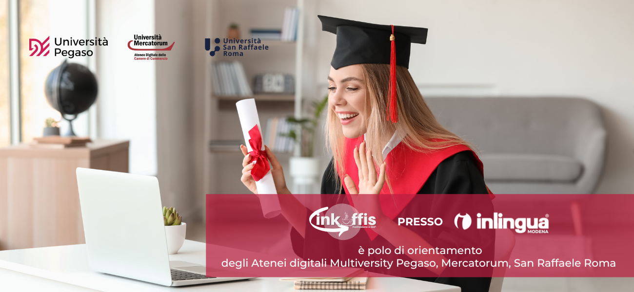 Studiare all’università non è mai stato così accessibile! Presso inlingua Modena trovi inkoffis, il polo di Orientamento ufficiale delle Università Digitali Pegaso, Mercatorum e San Raffaele Roma: tre atenei telematici riconosciuti dal MIUR, leader in Italia per l’innovazione nella formazione universitaria online.